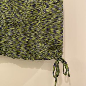 Athleta Tinker Tank in blue/green with a drawstring bottom and racer cut arms. This tank has great support, removable light padded cups and the design keeps your top down in all positions and helps camouflage the midsection if desired. It is in great kindly used condition. Size M.