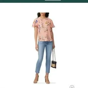 Pink printed silk (100% Silk). Top. Short sleeves. Crew neckline. 23" from shoulder to hemline. Imported.