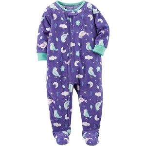 NEW Carter's Baby and Toddler Girls Birds and Moons Plush Fleece Purple Pajama Sleeper
