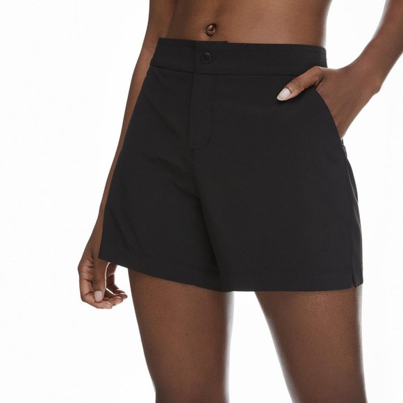 Embrace the great outdoors in Athletic Works women's woven hiking short. Composed of woven fabric with moisture-wicking properties, it's styled with two slash pockets and a front snap-button closure. Colour available is grey as shown in first photo. The model in the other photos is wearing the same style item in black.