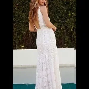 Free people yesenia lace eyelet maxi dress size large, worn only for photo shoot.