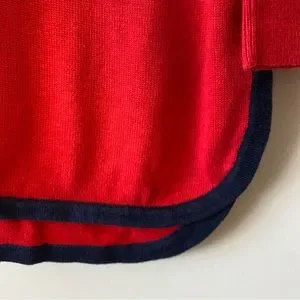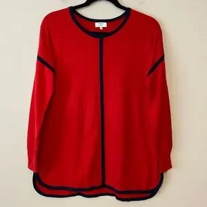Crown & Ivy brand bright red long-sleeve sweater, with navy blue trim. Rounded hemline. Perfect for the holidays! In excellent condition, only worn a couple of times, comes from a smoke free home.