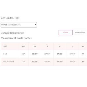 Measurements for size Small: