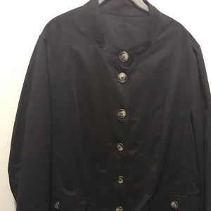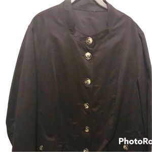 Woman’s dark brown button-up fashion coat! Item was bought with other Ulla Popken coats, even though there is no tag. Smooth feel, detailed buttons, beautiful fashion item!