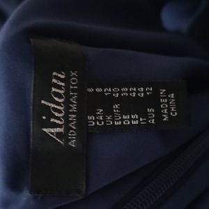 Aidan Mattox cold shoulder Ruffle Maxi Dress in a dark blue satin womens 8. There are some snags on the front. So beautiful and elegant! Size 8.