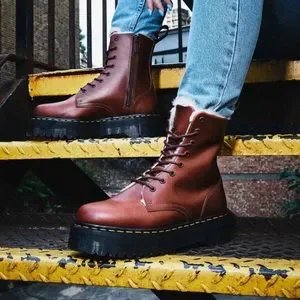 Dr martens , the Jadon platform boots are built from water-resistant leather and marked with our signature DNA: yellow welt stitching and a scripted heel loop.