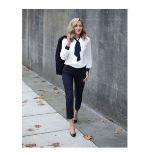 M&S Collection from Marks and Spencer UK Slim ankle grazer pants Side pockets, belt loops, side slits on bottom of leg Size: UK 8 = CDN 4 Waist: 28 inches Inside leg: 24 inches .70% Cotton 27% Polyester 3% Elastane These pants are super comfortable due to lots of stretch with the 3% elastane. Great for the office, looks good with heels, flats and white runners.