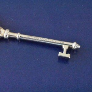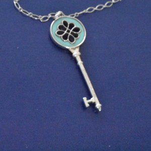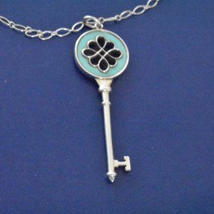 Large Blue Enamel Tiffany & Co Silver Knot Key 2 3/8" Pendant.