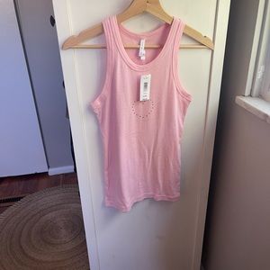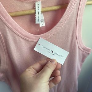 NWT Tommy Hilfiger Intimates Pink Racerback Tank-top with Silver Heart Stud. 100 % Cotton. Size Medium.