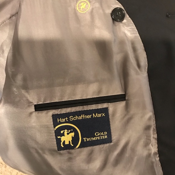 44L Hearts after Mark’s golden trumpet tier black double-breasted blazer it has been professionally tailored and was gently worn the person who wore the suit is approximately 6 foot tall and weighed 220 pounds three Tie as shown with purchase