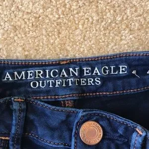 American Eagle sky high legging 00 ae Jeans 👖 gently used has some slight wear in fabric elastic. Dark blue wash