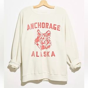 A true vintage-inspired staple, this timeless crewneck sweatshirt is featured in an oversized, slouchy silhouette with scoop neckline and Alaska graphic at chest.