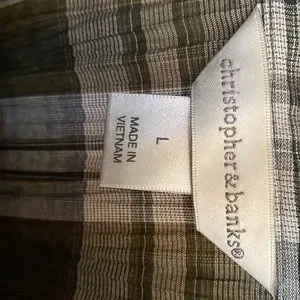 Christoper & Banks 3/4 sleeve button down shirt. Army green, dark blue & white All buttons attached & in great shape