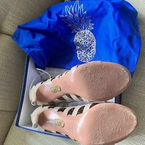 Aquazzura Amazon 105 Leather Lace up Nude Sandal