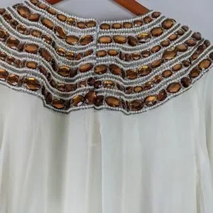 NWOT, Beautiful Embellished Kaftan Size XL, Loose Fit, And Flare Dress, Little Stain on the Right Sleeve as shown in the pictures.Some Snags on the Front, Measurement Approx L 62", Sleeves 30".