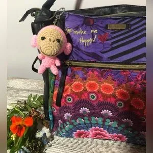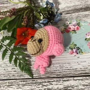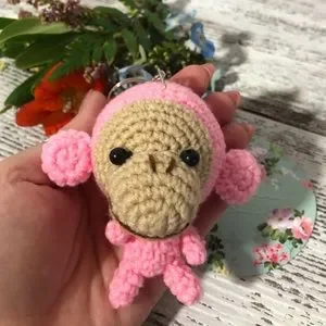 Hand-knitted Monkey Keychain. Pink. Accessorie for Bags/ Handbags