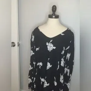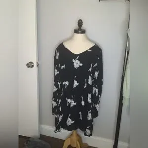 Black dress with white floral embroidery