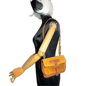 Rich two tone brown suede shoulder bag satchel with tassel accent and removable shoulder strap. Rare & roomy retro piece purchased at Bob Ellis in the 90’s.