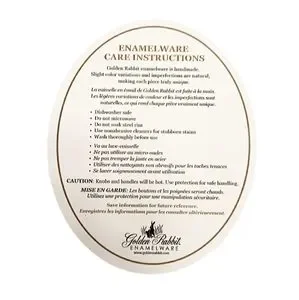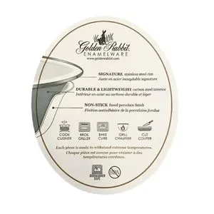 This enamelware is made of carbon steel coated with a porcelain enamel and trimmed in stainless steel. There will be variations in the shading of colors and pattern formations which are the results of the hand-dipped process.