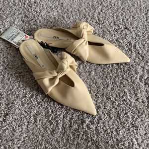 Zara cream coloured bow detailed mules