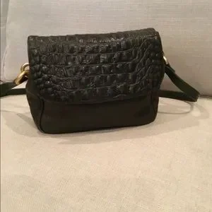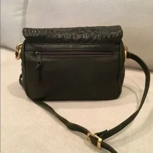 This rich, dark olive green beauty with a buttery soft leather body and a croc embossed flap has gold-toned matte hardware.