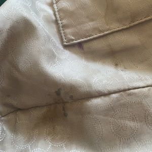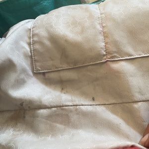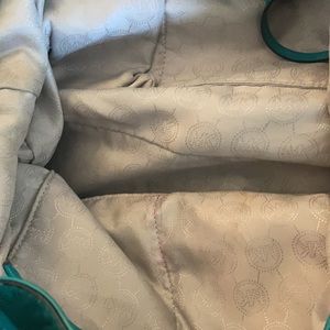 Teal green leather with chrome hardware. Detachable shoulder strap in good condition. Scratches on hardware from daily usage. Light tarnishing on hardware but still very functional. Clean outside exterior with some signs of wear on corners of bag. Tiny spot on bottom of bag . Interior shows signs of wear. Some soiled spots on lining but no rips or tares. Please see pictures. Great bag for every day use or for long weekend travel. This bag is in good preloved preowned condition.