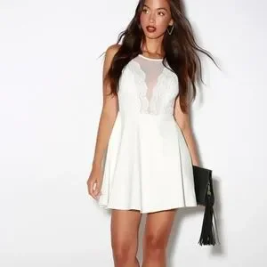 NWT Lulu's I Promise White Lace Skater Stretchy Dress XS
