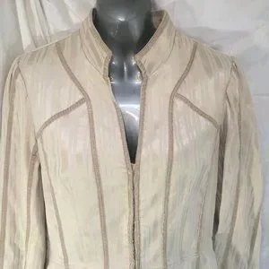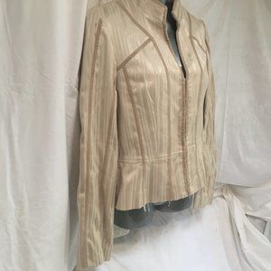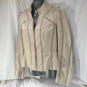 Le Chateau Jacket Fitted Suit Blazer Women's Size Med Beige Stripe Hook & Eye