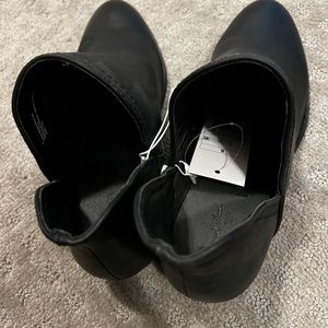 Perfect condition brand new black ankle boot. Faux leather booties. Great rubber sole. Easy slip on