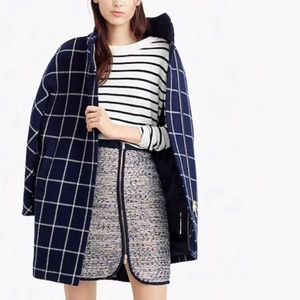 J Crew Navy Metallic Tweed Zip Mini Skirt