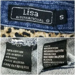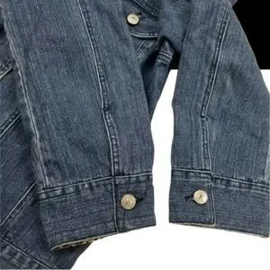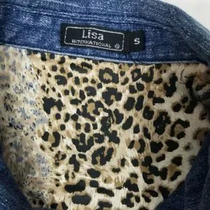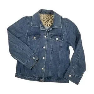 Lisa International Womens Small Denim Stretch Jacket Blue Jean Leopard Flip Cuff