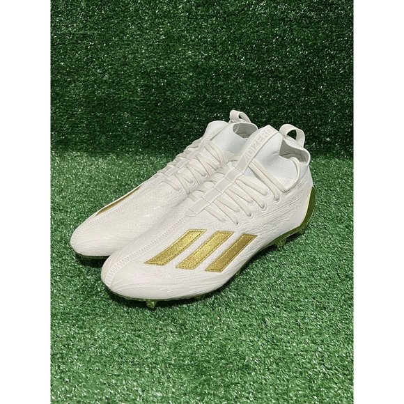 Adidas ADIZERO Primeknit Men's Football Cleats White Metallic Gold Sizes 8-13 New In Box