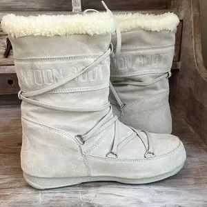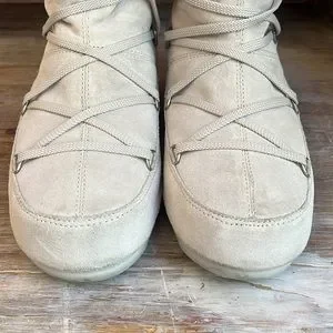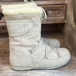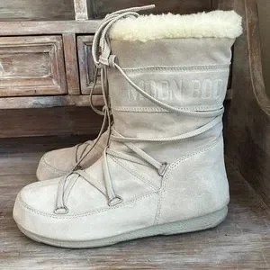 Moon Boots with Tecnica! So warm and cozy, lace-up style, cream with off-white faux fur, water-resistant. These have been very gently worn and are in excellent condition! EU size 38 2which best fit a US size 6-8. *Some minor signs of wear throughout, and a very small mark on heel. Please see all photos to reflect current condition as all sales are final.
