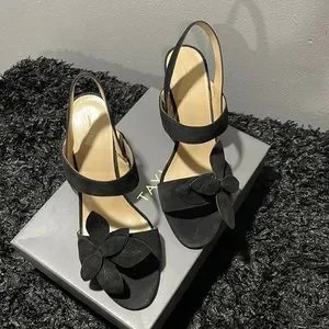 Ann Taylor Black Suede Flower Heel - 9 1/2 New in Box