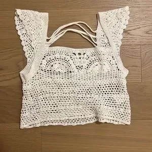 Beautiful and delicate top. Can be worn over the shoulder or off the shoulder. Nice back detail Hand crocheted.