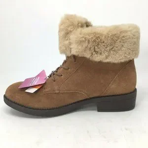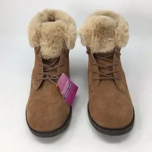 Skechers NIB Elm Cold Day Boots Booties Women's Size 8.5 Brown Faux Fur Lace Up