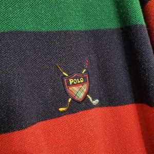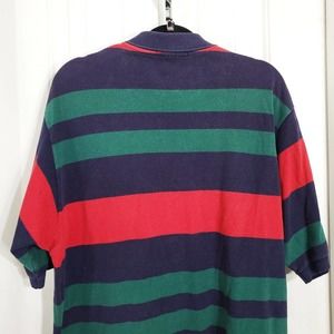 Polo Ralph Lauren Men's Golf Shirt Vintage 90s Green Red Blue Striped Rugby Collared