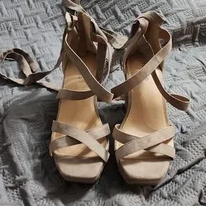NWT Faux Suede Taupe Laceup Platform heels Torrid Sz 9.5