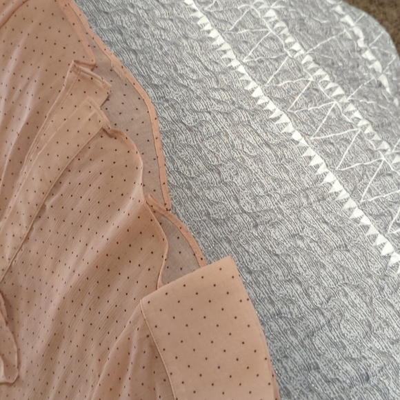 Peach poplin style shirt with ribbon neckline