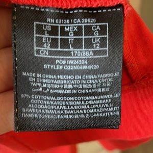 Orange/red color blazer from Guess. Clasp in the front with pockets. Buttons on the sleeves.
