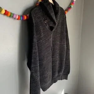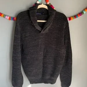 Polo RL Williamsburg Shawl knit sweater. Beautiful tortoise buttons on shawl collar. 100% cotton shaker knit. Black/grey. Excellent condition Sz large