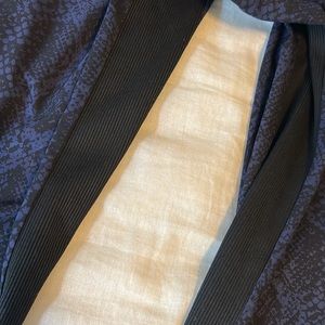 Black stretchy material on inside and outside of leg