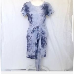 Lovers + Friends Blue Smoky Tie Dye Mini Dress Small Belted Short Sleeve
