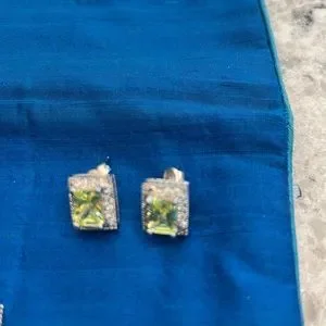 Peridot color set includes ring, earrings, pendant and bracelet. Costume with pave treatment around stones Ilona ring, earrings and pendant. Gorgeous and has a lot of sparkle. Like new. Bracelet 7” / ring size 8 / earrings 1/2” x 1/2” / pendant 3/4”x 1/2”
