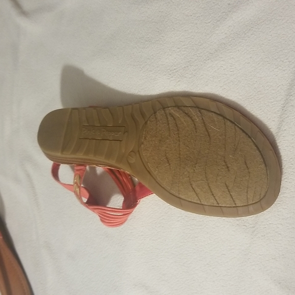 Pink & Pepper Sandels, coral with gold accents, size 7