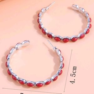 Oblong shaped hoops in western style antiqued oxidized silverplate featuring red howlite turquoise stones. Nicely weighted, quality made. Nickel-free hypoallergenic alloy posts.