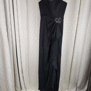 BCBG MAX AZRIA black strapless side drape gown