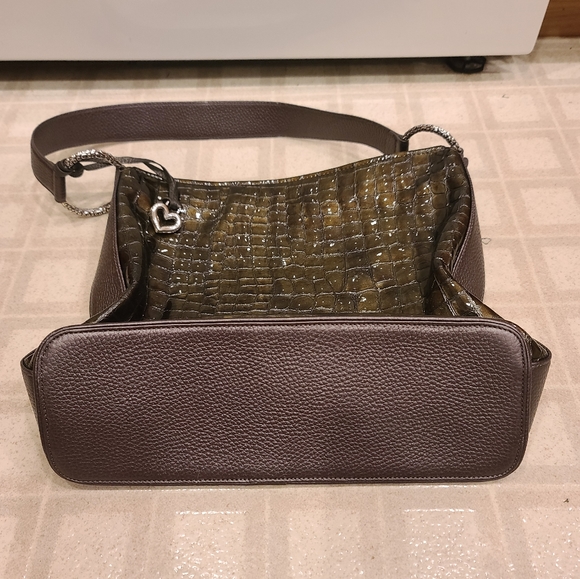 Brighton Cher Olive Green Croc Patent Leather Large Hobo Shoulder Bag. Please see pictures closely as they are part of description
