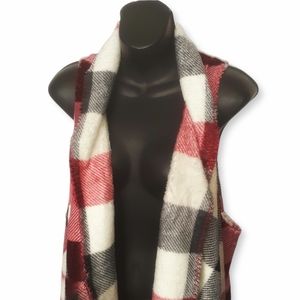 Red White Black Buffalo Plaid Long Waterfall Vest