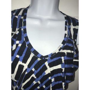 Banana Republic Blue Black White Ruffled Rayon Lyocell Knit Tank Sz XS